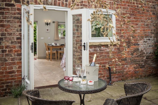 A country kitchen with oak beams and dove nesting holes provide a feature entrance to this cosy romantic barn for two. Read More >